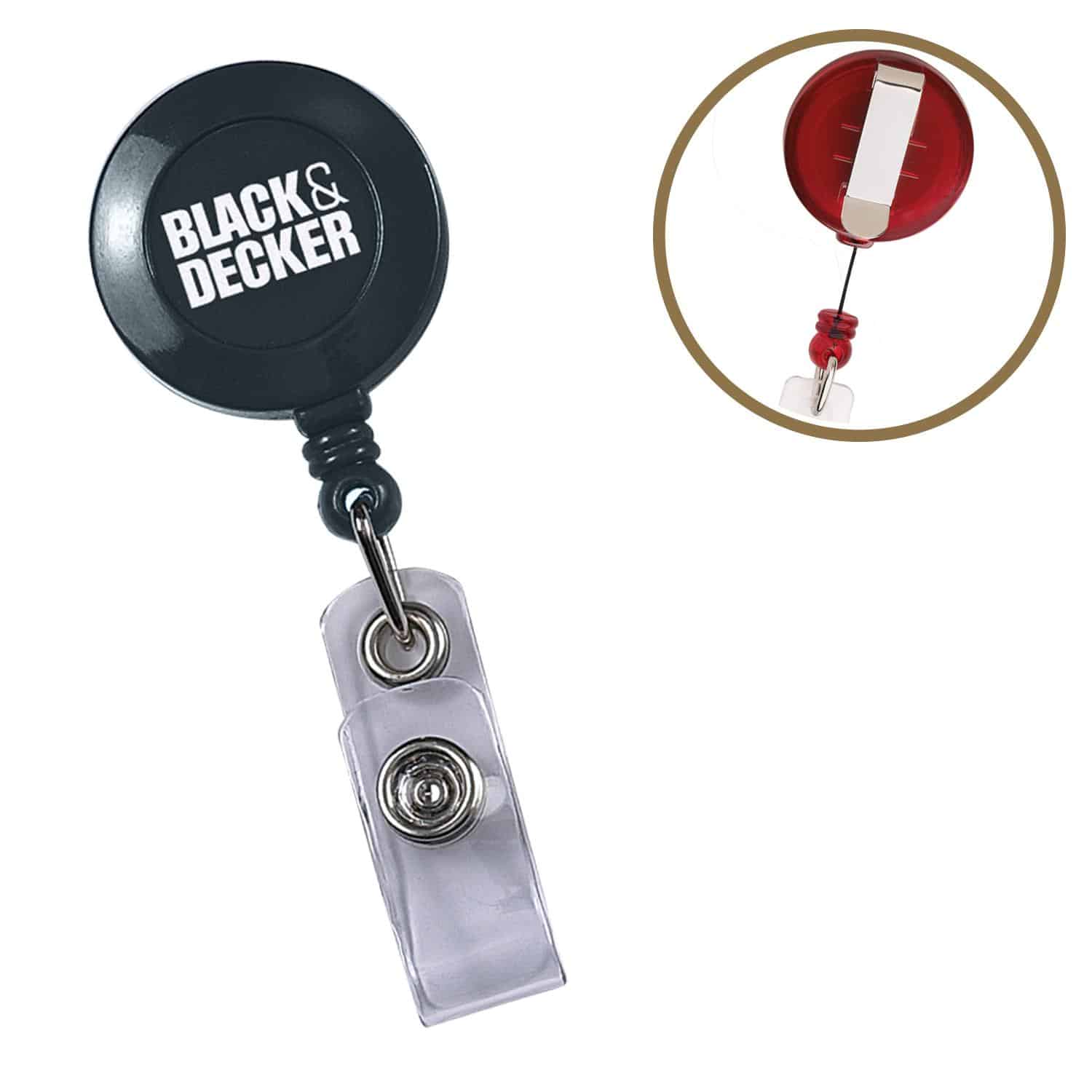 Lightweight, round design features sturdy 30″ sturdy nylon retracting cord, strong snap lock and slide clip. Secure-A-Badge conveniently clips to belts, pockets, waistbands or purses. Ideal for trade show name badges. Complies with Prop 65. 1 5/8″ W x 1 3/8″ H x 5/8″ D